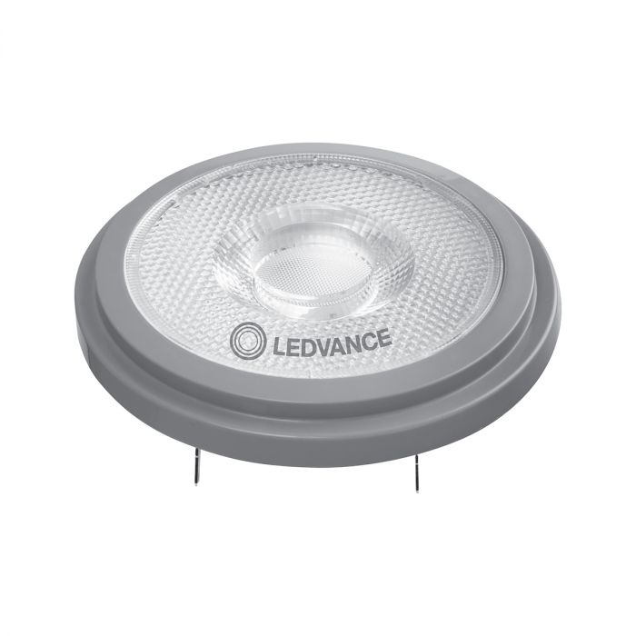 Ampoule AR111 11.7W, conception, dimensions, flux lumineux comparables à une lampe à incandescence classique ou halogene. Pas d'émissions d'UV ou d'IR dans le faisceau lumineux.