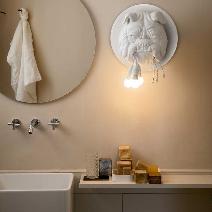 L'applique Amsterdam prend la place qui lui revient dans le fantastique et lumineux "zoo de Karman" : elle s'inspire d'un bulldog qui a trouvé sa place dans la capitale néerlandaise et est devenu célèbre dans le monde entier...