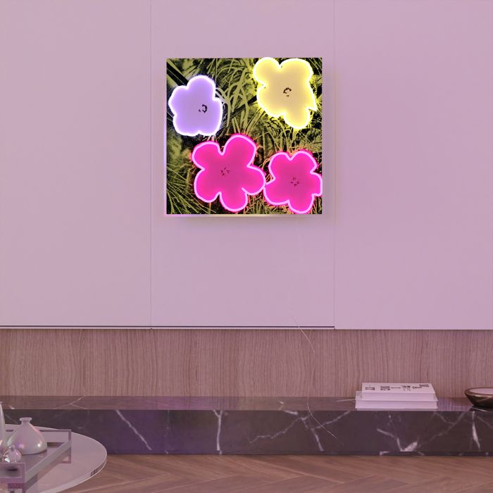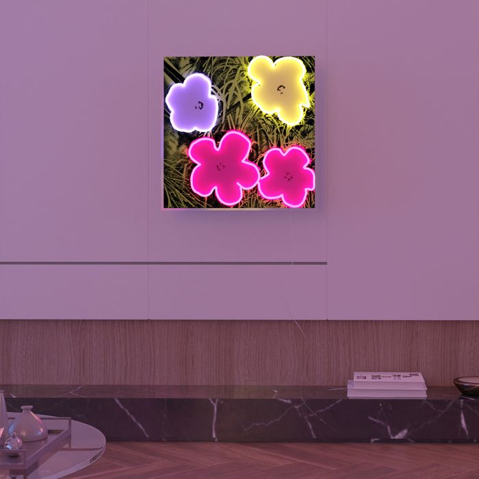 La série Flowers d’Andy Warhol en 1964 se démarque de ses sujets habituels - la culture pop et les marques. Les fleurs d’hibiscus originales, tranformées par Andy, prennent vie grâce à des néons LED multicolores dans notre collection Yellowpop x Andy Warhol ! Les éléments floraux étaient populaires dans la mode et la scène artistique des années 1960, et cette pièce reflétée l’implication d’Andy dans ce monde. Il était peut-être un produit de son époque, mais son travail a également façonnée l’époque et le monde dans lesquels il vivait. En élevant des objets quotidien, comme ces fleurs, au rang d’oeuvre d’art, il a changé la façon dont les gens considéraient l’art. Le tube LED flexibles et également sûr et respectueux de l’environnement ! Réglez l’intensité en fonction du moment de la journée grâce à son variateur de lumière.