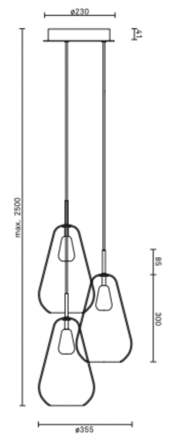 Sources : E14 3 x 25W , 220-240V (ampoule non incluse)
