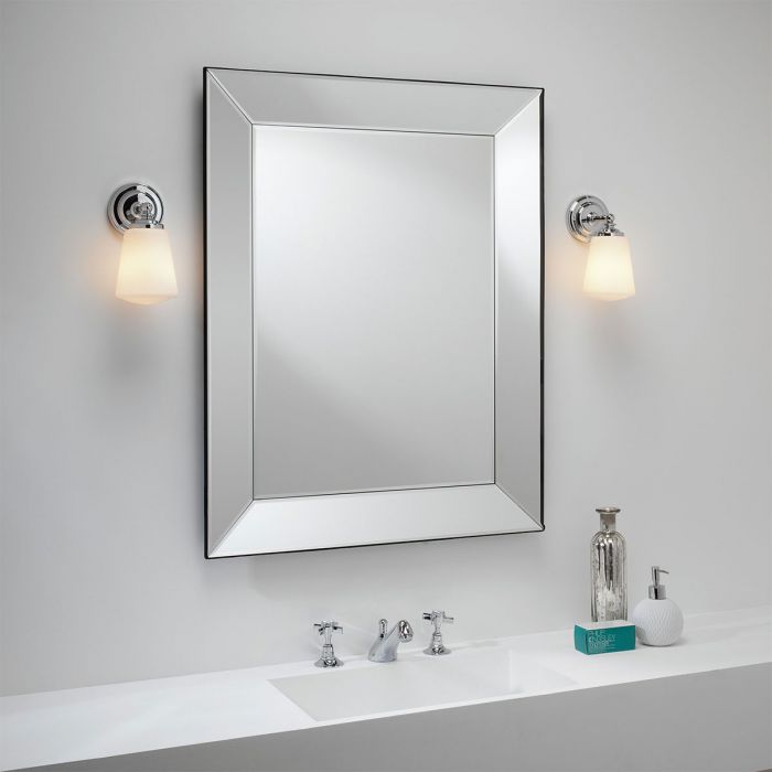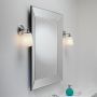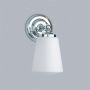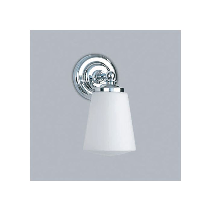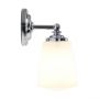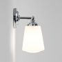 Applique murale Anton de Astro pour la salle de bain. Sa structure est de finition chrome polie et son diffuseur est en verre blanc opalin. Ell est équipée pour une ampoule E14 de 40W maximum.