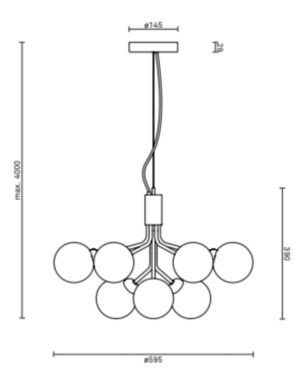 Sources : G9, 9 x 3.2W, 220-240V , 2700K, 400lm (ampoule non incluse)