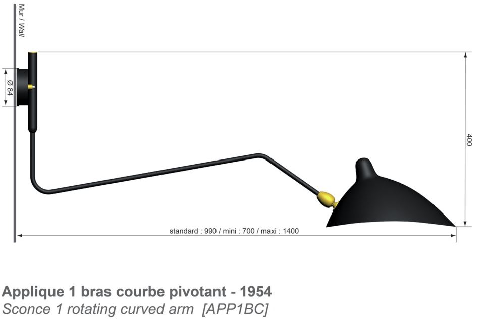 L'applique à 1 bras courbe en acier et aluminium est un modèle design créé par Serge Mouille. Son abat-jours en tétine en tôle emboutie pivotent sur des rotures. Cette applique est fonctionnelle et tendance qui habillera vos espaces de vie.
