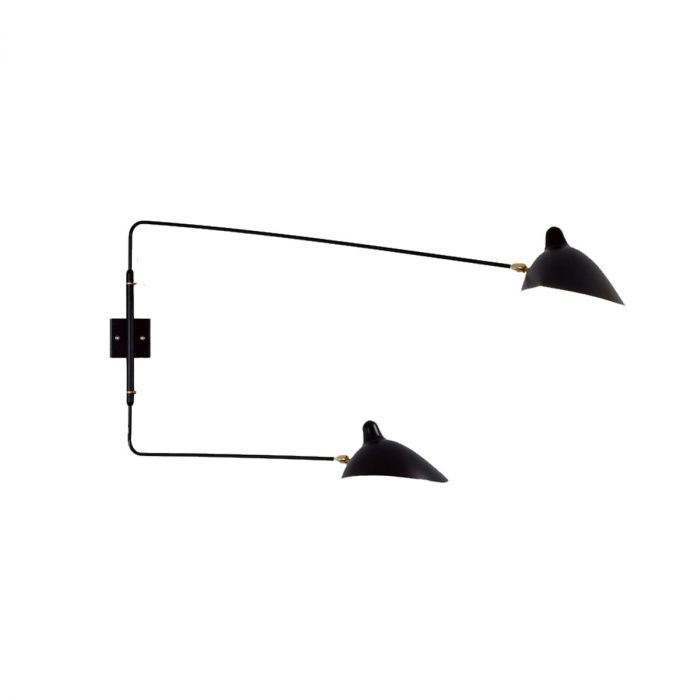 Applique 2 bras droits pivotants de Serge Mouille. Cette applique est la réédition originale du modèle 1954.