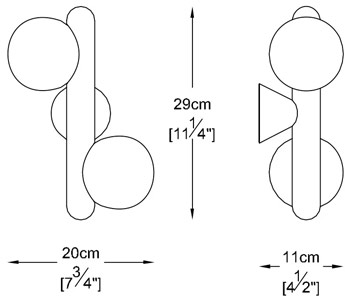 Sources (non fournies) : 2 x LED 5W max ou 2 x 28W max (éco-halogène)