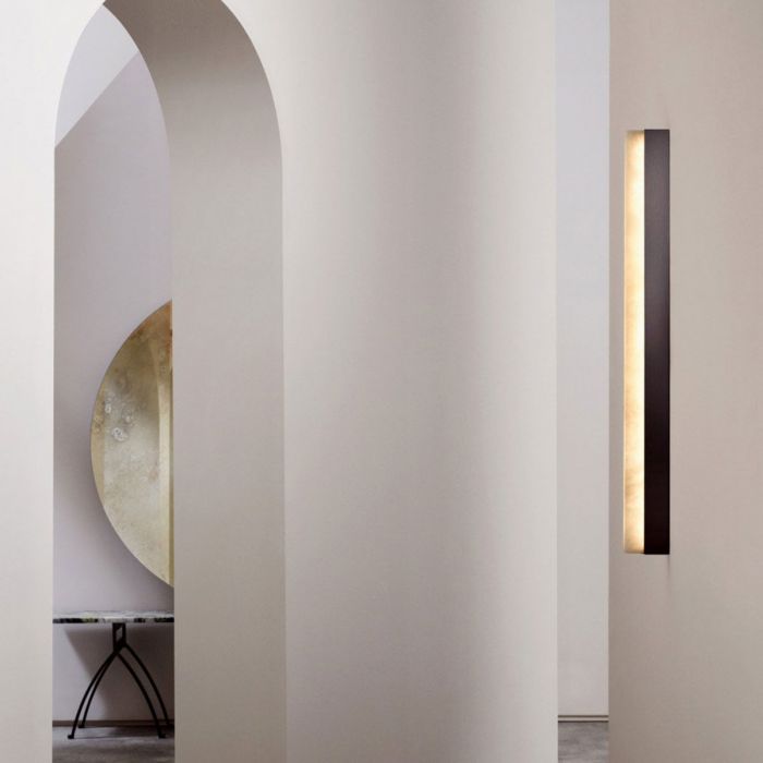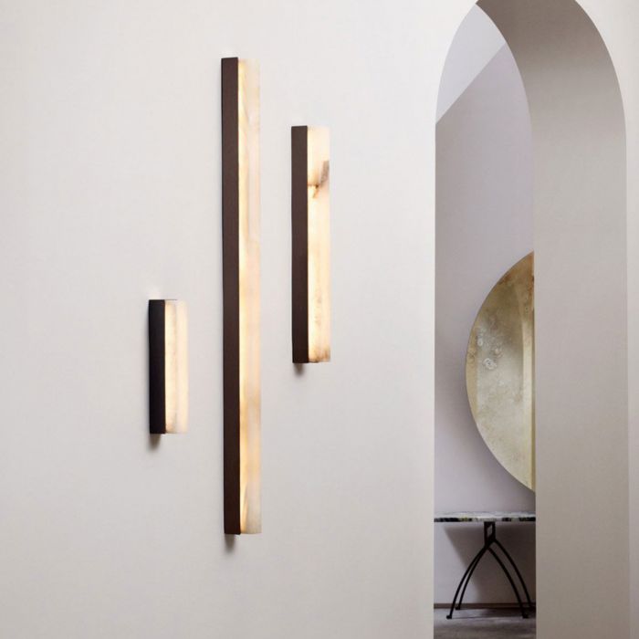 Un faisceau de lumière architectural fusionné avec des matériaux haut de gamme tels que le bronze, le laiton satiné et l'albâtre poli crée un élégant pendentif qui peut être utilisé seul ou comme composition créant des possibilités infinies pour personnaliser un espace.