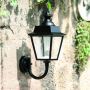 L’applique prévue pour l’extérieur de la gamme Chenonceau du célèbre fabricant français Roger Pradier est un incontournable si vous aimez le classique et l’élégance, elle est proposée dans de nombreux coloris selon votre style ou vos préférences. Elle est fabriquée en aluminium avec une garantie de 25 ans anticorrosion. Les verres sont tout en transparence pour une bonne diffusion de la lumière. Si vous avez une demeure avec des murs en pierres ou en bois, elle sera la bienvenue dans votre espace que ce soit sur une façade principale, pour éclairer un balcon au-dessus d’une porte d’entrée ou d’une terrasse. Elle est munie d’une douille E27 qui accepte une puissance de 75W, nous vous conseillons d’adapter de l’ampoule led, celle-ci ne doit pas dépasser 16 cm.