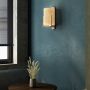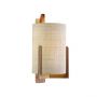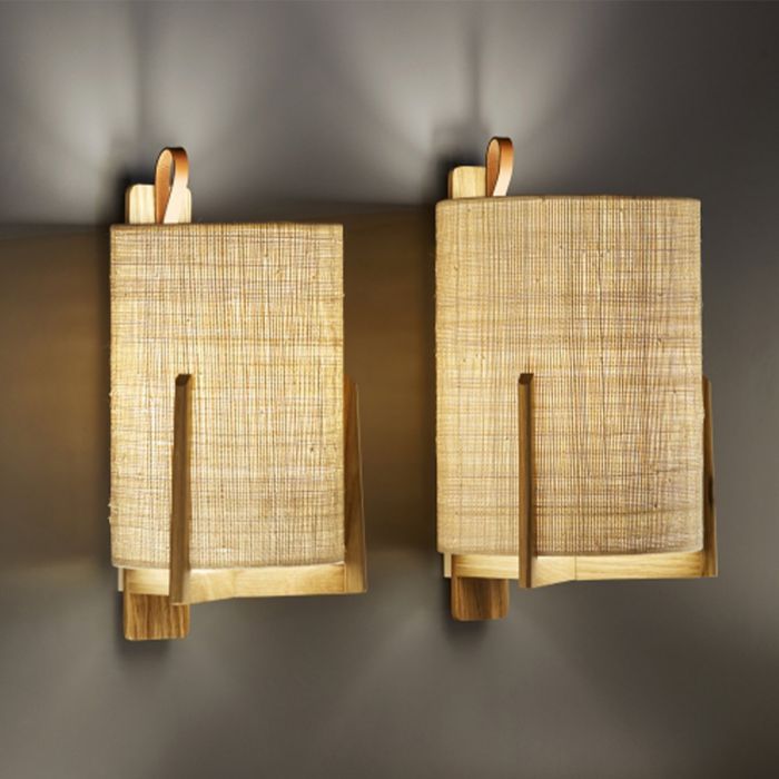 Greta est une lampe de table en bois de chêne et vernis satiné. Abat-jour en fibre naturelle et poignée en cuir naturel.