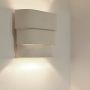 Louis et Jack. Ainsi se nomment les jumeaux de 32 ans d’Anita le Grelle. Mais c’est aussi le nom qu’elle a donné aux deux lampes murales qu’elle vient de concevoir pour Serax. « J’ai vainement cherché un luminaire qui, sans trop attirer l’attention laissait une impression subtile », explique Anita le Grelle. « Dans mon atelier, je me suis lancée dans des expériences avec des bandes de grès. Je les ai superposées, reliées entre elles. Et c’est ainsi que sont nés Louis et Jack, deux lampes murales en grès, à la fois différentes et complémentaires, chacune avec spécificités.