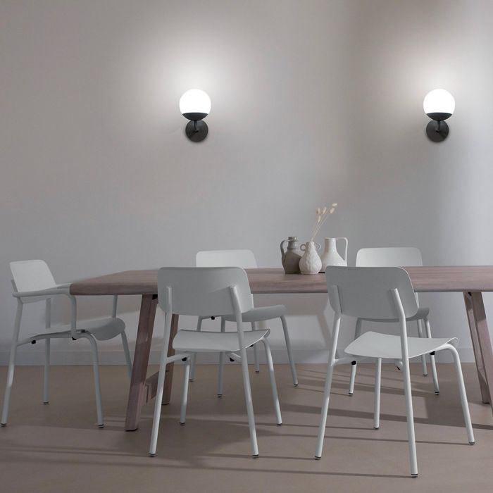 Applique Mooon! de Fermob. Avec la grande famille des lampes MOOON!, Fermob continue son expansion du luminaire in & outdoor avec l'applique D15 MOOON!. Poursuivant sa réinterprétation des lampadaires qui fleurissaient sur les terrasses des troquets parisiens le siècle dernier, Tristan Lohner ajoute à son arc une applique murale connectable à fixer sur les murs. Avec un globe en verre de diamètre 15 cm, la lampe MOOON! n'est pas sans rappeler une petite lune. Diffusant une lumière douce, ce luminaire déco à la structure aluminium se décline dans les teintes exclusives du nuancier Fermob. Pour illuminer joyeusement votre quotidien ! Derrière sa bonhomie et son apparente simplicité, se dissimule un concentré de technologie. La lampe D15 MOOON! se commande à distance par interrupteur ou par Bluetooth. Cette applique connectée propose 2 scénarios d'éclairage du blanc froid (6000°k) au blanc chaud (3000°k) dont l'intensité peut être réglée au pourcentage près, grâce à l’application Fermob Lighting ou l’interrupteur connecté Ludo. Résultat ? Une multitude d'ambiances lumineuses pour éclairer l'intérieur comme l'extérieur. Garantie par l'indice de protection IP54, ce luminaire outdoor trouvera sa place aussi bien dehors, sur une terrasse ou sur un balcon, que dedans, dans un couloir, une chambre en tête de lit ou encore dans une salle de bain. On dirait bien que Fermob a décroché la lune pour vous... Fidèle aux valeurs d'accessibilité de Fermob, l'applique D15 MOOON! se fixe tête en haut ou tête en bas grâce à son système « Quick'n'clic ». Facile d'utilisation, « Quick'n'clic » garantit une installation rapide en un quart de tour, parfaitement alignée grâce à son niveau à bulle intégré et son bornier débrochable. C'est si simple de prendre soin de son extérieur...