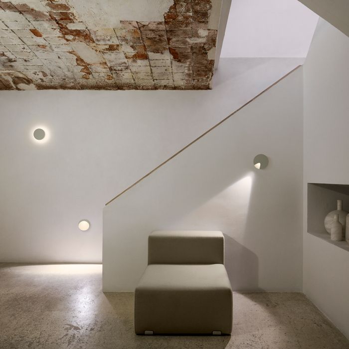 Avec ses appliques circulaires de forme compacte, la collection Dots vient ponctuer les murs de points lumineux. Installées de façon isolée tel un joyau étincelant ou en configuration groupée pour dessiner une galaxie scintillante, les appliques Dots offrent toute une gamme de solutions d’éclairage personnalisées. Quatre versions sont proposées : une lampe directionnelle graphique, une lampe de lecture et deux modèles de lampe d’ambiance. Les appliques Dots font émerger sur les murs un nouveau paysage, intime, fait de faisceaux et de reflets. Comme des notes de musique s’enchaînant les unes aux autres, elles écrivent, dans l’espace, une mélodie de lumière.