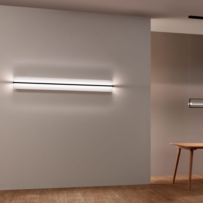 Offrant littéralement un cadre à l’éclairage, l’applique Kontur met élégamment en scène la source de lumière, qui apparait ici sous la forme d’une ligne lumineuse. Cette applique grand format présente un cadre noir épuré équipé de LEDs qui viennent éclairer, au choix, un diffuseur en verre opale soufflé bouche ou un réflecteur en métal incurvé, mariant ainsi pureté des volumes et architecture géométrique graphique. Le modèle à diffuseur en verre cylindrique apporte une lumière chaude qui éclaire à 360 degrés, tandis que la version à réflecteur en métal incurvé fournit un éclairage d’ambiance évoquant une pluie de lumière.