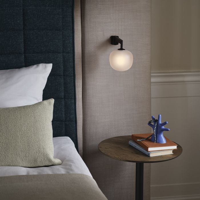 L'applique murale Rime apporte une perspective élégante à la lumière du verre grâce à son verre semi-transparent sablé pour une expression raffinée. Le design présente une forme caractéristique, inspirée de la forme des glands, complétée par la forme géométrique de son bras. L'applique murale Rime dispose d'une source de lumière à intensité variable, permettant à son utilisateur d'ajuster l'intensité lumineuse à ses besoins individuels, que ce soit à la maison, au restaurant ou dans une chambre d'hôtel.