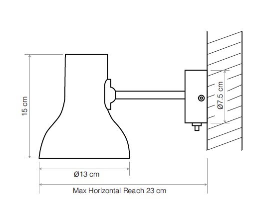 Matériaux : abat-jour en aluminium, plaque murale en aluminium moulé sous pression, bras en aluminium, finition en peinture mat