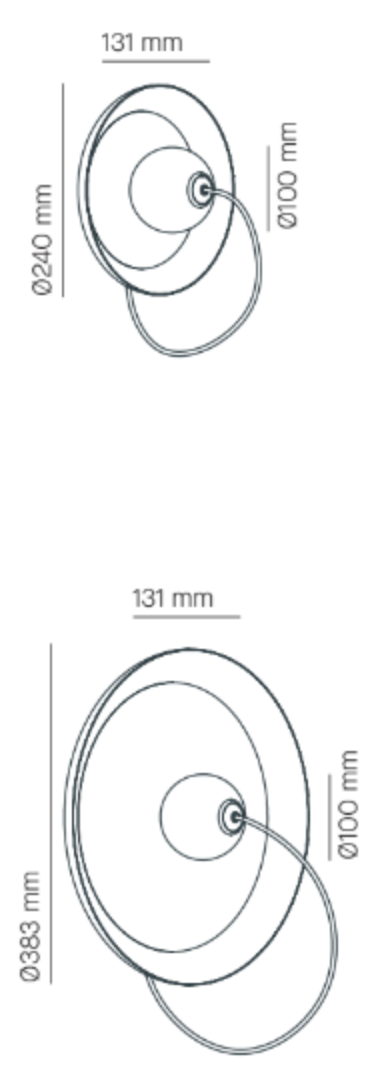Taille 2 : diam. 38,3 x diam. ampoule 10 x prof. 13,1 cm