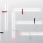 Applique élancée Outline réalisée en aluminium et conçue par l'architecte Francesco Murano. La lumière et le cadre se combinent pour devenir une fresque luministe qui traverse l'espace : son empreinte graphique a un impact visuel intense et confère au mur et à ses abords un caractère unique. Les sources LED intégrées ont un rendu des couleurs exceptionnellement élevé. Disponible en versions avec éclairage "Total White" et "Red Light" à l'extrémité. Les finitions disponibles incluent FT blanc, FT noir et FT rouge.