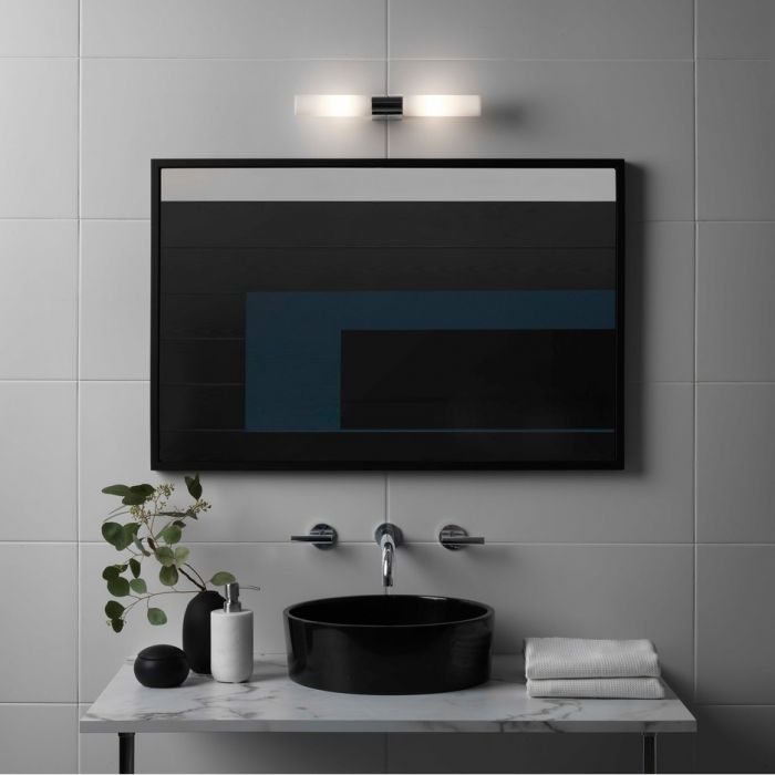 Montée au-dessus d’un miroir, cette applique murale, aux proportions parfaites, apporte une symétrie élégante à toutes les salles d’eau. Elle émet une éclairage vif et uniforme, ce qui en fait un modèle efficace pour l’éclairage fonctionnel, tandis que la finition en verre dépoli évite l’éblouissement. Son design se démarque par ses lignes profilées.