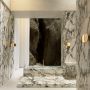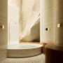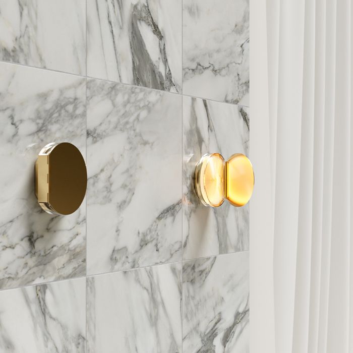 Comme un poudrier ou un coffret précieux, l’action mécanique d’ouverture ou fermeture rend l’objet rassurant et immédiatement compréhensible. La lumière est diffusé par un épais pavé de verre, dans toute son épaisseur. À l’intérieur, le volet en laiton poli fait office de miroir pivotant grâce à une charnière bien présente. On peut allumer et régler l’intensité de la lumière, le temps de s’accepter. La lumière est variable manuellement, non pas avec un variateur manuellement, non pas avec un variateur mais avec un volet que l’on ouvre ou que l’on ferme en fonction de l’intensité lumineuse désirée. Initialement pensé pour la salle de bain, Poudrier peut néanmoins habiller un couloir ou une entrée.