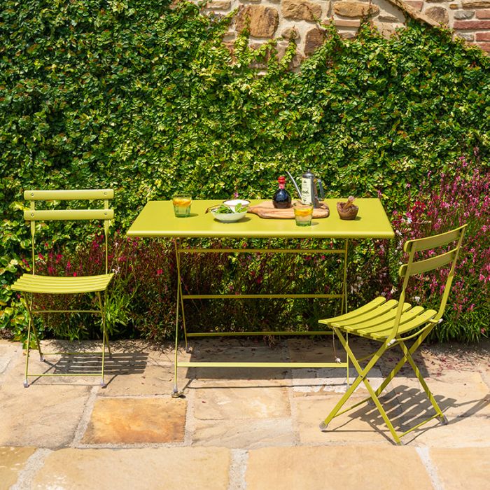 La collection Arc En Ciel est dédiée à ceux qui souhaitent aménager leur espace plein air et profiter d'un mobilier outdoor aux dimensions réduites, adaptable à tout type d'espace. Pratique, elle est conçue pour résister à tous les temps, grâce à son traitement vernis final. Légère, elle passe de l'intérieur à l'extérieur en deux temps trois mouvements. Le rangement est amplement facilité par le faible encombrement de ce mobilier pliant. Cette table tendance habillera votre jardin grâce à son design moderne et ses couleurs chatoyantes.