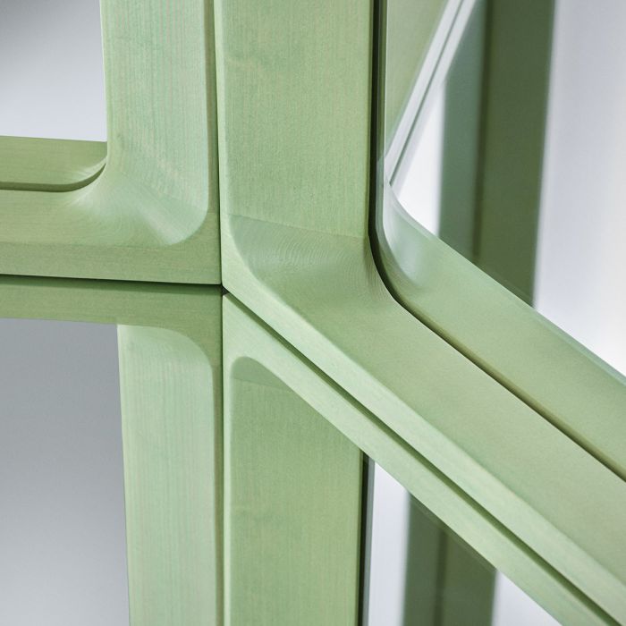 Mélangeant un style de miroir en bois traditionnel avec une touche moderne, le miroir arqué est disponible en deux tailles polyvalentes et dispose d'un cadre subtil en retrait, lui donnant une charmante allure semblable à celle d'une fenêtre. Le miroir est traité avec une teinture pour bois et fini avec une laque mate transparente qui fait ressortir le caractère naturel et le grain du bois d'épicéa. Disponible en trois couleurs : gris clair, vert clair et lilas clair, chacune offrant une expression distincte et unique.