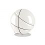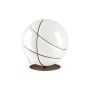 La collection Armilla est disponible dans un diamètre de 36 cm et dans la version suspendue ou bien de table. Le diffuseur est en verre blanc brillant, soufflé sur un moule rond, avec l'insertion de cercles métalliques qui resteront doucement emprisonnés par le verre fondu à la fin du processus. Les anneaux sont en finition époxy, dorée et chromée. Le branchement au réseau électrique est sous réseau de tension pour les lampes halogènes, fluorescentes et à LED.