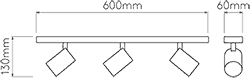 Barre avec 3 spots rotatifs (rotation sur 330° et inclinaison sur 90°) pour l'intérieur