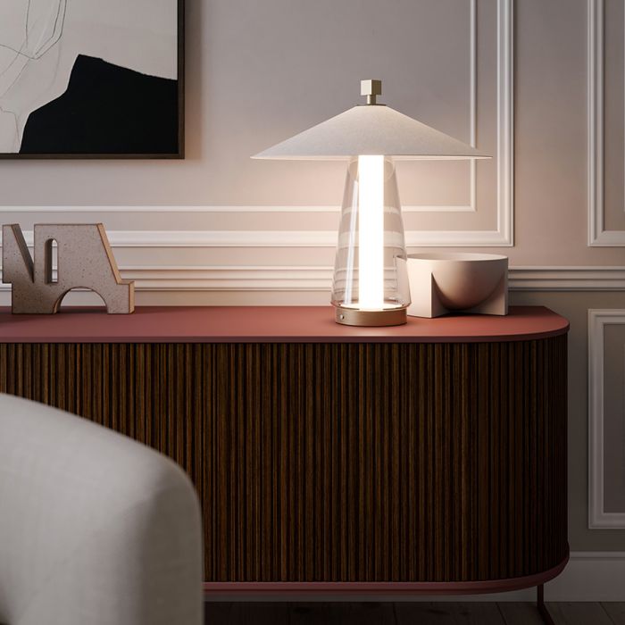 Une gamme de produits caractérisée par une forme épurée et linéaire, mais avec une forte personnalité, l'abat-jour d'Asia s'inspire des chapeaux pointus des cueilleurs de riz chinois, et la combinaison de matériaux de tissu, de verre et de métal est une autre caractéristique clé de la collection.