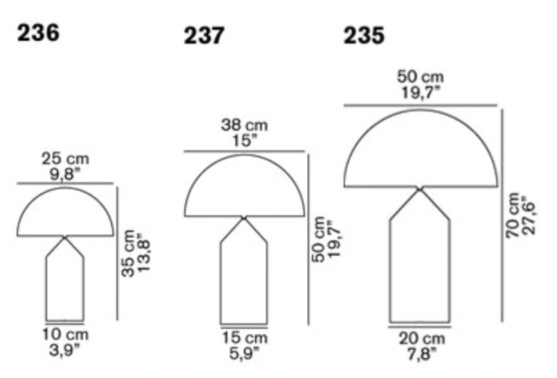 La lampe existe en trois dimensions : modèles 235, 236 ou 237.