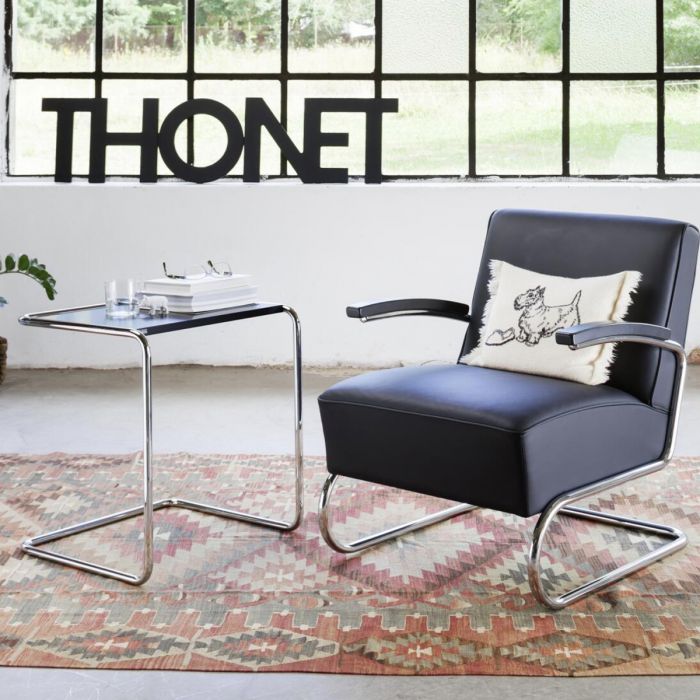 Élégant, flexible et adapté à une variété d'utilisations. Dans ses dimensions, le set de table B 97 rappelle la table gigogne B 9 de Marcel Breuer. Sa construction modifiée offre cependant un avantage pratique : grâce à l'ouverture d'un côté, les tables peuvent être tirées sur le bord d'un canapé, fauteuil ou lit. Ils peuvent également être commodément poussés l'un dans l'autre. Le design Thonet de 1933 fait partie des classiques du mobilier en tube d'acier.