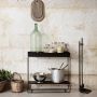 Le plateau supérieur et l'étagère inférieure sont idéaux pour ranger et mettre en valeur des accessoires décoratifs ainsi que des articles pratiques du quotidien tels que des tasses, des assiettes et des bouteilles. La silhouette mince signifie qu'il s'intégrera dans la plupart des espaces, comme support de plante d'intérieur ou solution de rangement de balcon.
