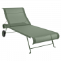 Bain de soleil Dune de Fermob. Avec ses courbes fluides, le bain de soleil Dune allie à l’élégance fonctionnalité et confort exceptionnel avec sa très grande surface de repos en toile TTE, son dossier réglable selon 4 positions et ses roulettes pour une manipulation facilitée.