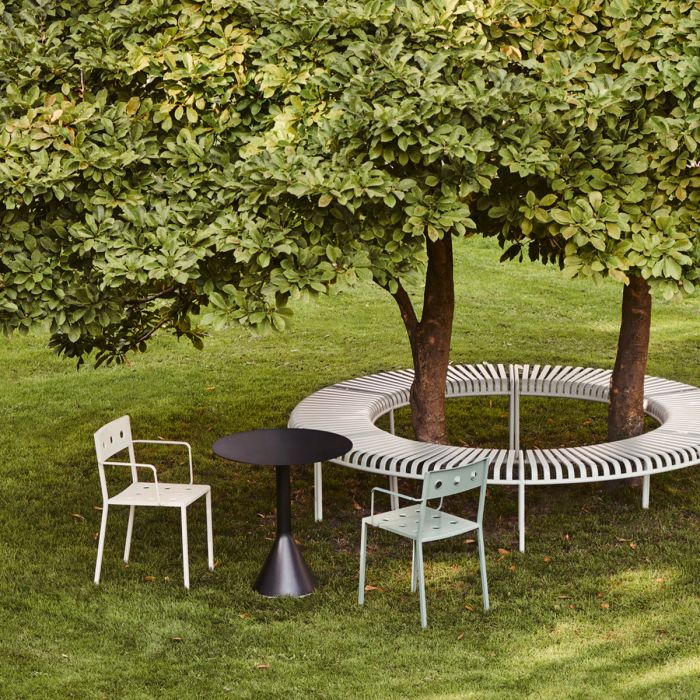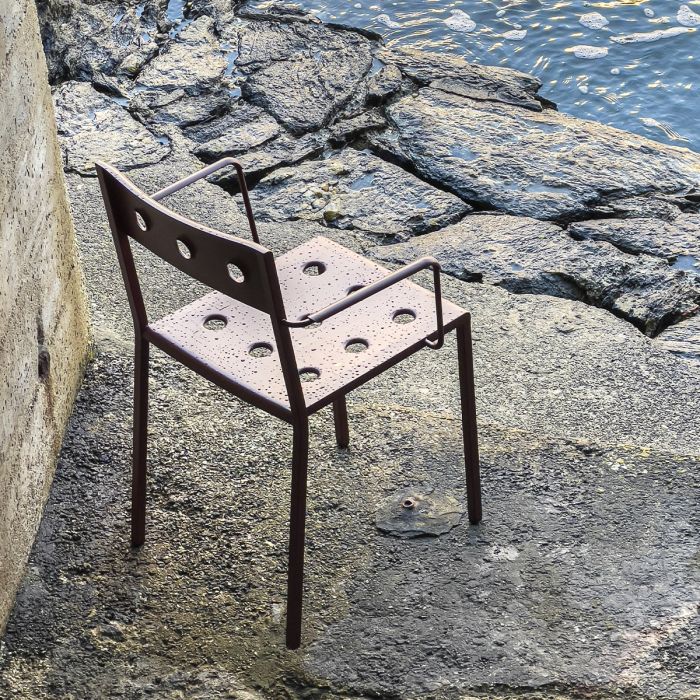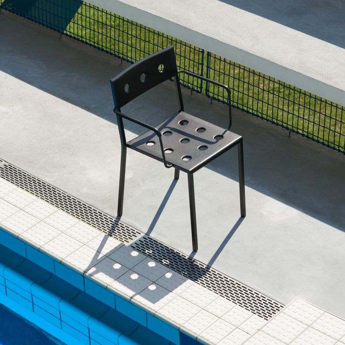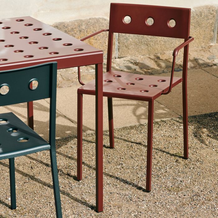 Conçu pour HAY par Ronan et Erwan Bouroullec, le Balcony Armchair est une chaise de salle à manger élégante et fonctionnelle avec accoudoirs pour une utilisation en extérieur. Le design carré est adouci par le dossier arrondi et les accoudoirs élancés, les multiples trous dans l'assise et le dossier renforçant la construction, tout en créant une expression distincte. Fabriqué en acier enduit de poudre avec un apprêt extérieur pour une résistance et une durabilité optimales, Balcony est disponible dans un certain nombre d'options de couleurs différentes. La conception empilable de la chaise signifie qu'elle est bien adaptée à tous les types d'espaces, des petits balcons et terrasses aux jardins et autres grands espaces extérieurs.