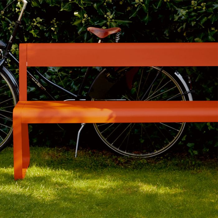 Banc à dossier Bellevie de Fermob. On se pose et on regarde le paysage.