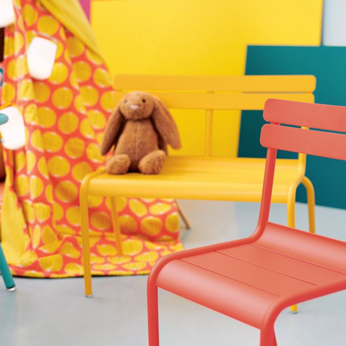 Banc Luxembourg Kid de Fermob. Les plus petits ont aussi leur banc ! Ce banc de la collection Luxembourg peut être associé aux chaises et tables de la même gamme pour le plaisir des enfants. A la fois résistant et léger, il se décline dans une multitude de coloris pop et acidulés. Adapté pour l'intérieur et l'extérieur, vous pourrez le placer ou bon vous semble.