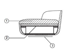 1. Composition de mousse ignifugé + polyester sur le cadre en bois