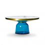 La table Bell Table de Sebastian Herkner va à l‘encontre de l’usage habituel des matériaux et surprend notre perception : ici, c‘est le pied de la table qui inscrit dans la pièce sa forme prégnante en verre de couleur transparent sur laquelle repose un corps métallique.