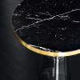Matériaux : fabriquée à la main, pied en verre soufflé à la bouche, partie supérieure en laiton massif verni clair, plateau en marbre noir ou blanc, poli et imprégné