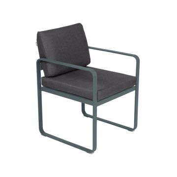 Le mobilier outdoor design chez Fermob c’est une spécialité ! Souvent signés de grands noms du design – ici, le studio Pagnon et Pelhaître - les produits Fermob se distinguent par leur silhouette unique. Le canapé Bellevie n’échappe pas à la règle, avec ses lignes douces. Et il a aussi la singularité d’offrir 5 généreuses places (et bien plus si vous vous serrez...). Imaginez-vous, blottis les uns contre les autres, sur votre canapé d’angle Bellevie. Il règne chaleur et bonne humeur dans l’atmosphère ! Ses modules, fixés les uns aux autres, donnent aussi accès, à une tablette maline qui permet de poser des tas d’objets : une lampe pour éclairer vos soirées d’été, votre verre de Spritz, des revues ou votre téléphone sont à votre portée. Les coussins de ce canapé qui rend vos discussions aisées sont revêtus d’un tissu outdoor 100% acrylique teint masse absolument remarquable : anti-taches, anti-moisissures, anti-abrasion et anti-déchirures ! Rien que ça ? Non, ultra-doux aussi... Ce n’est pas étonnant : c’est un tissu Sunbrella® ! Garnis d’un assemblage de mousses, ces coussins vous font baigner dans un confort absolu. Quant à la structure aluminium de votre canapé et sa tablette vissée en acier, elles résistent remarquablement bien aux intempéries. Illustration parfaite de l’expertise de Fermob. Personnalisez votre salon de jardin en optant pour la composition Bellevie 3B (ou sa version inversée 3A) ! 1 module gauche 2 places + 1 module d’angle gauche 2 places + 1 tablette de jonction + 1 module droit 1 place = LE canapé parfaitement adapté pour réunir tous vos amis.