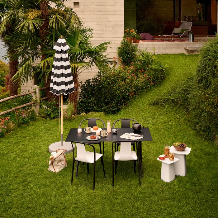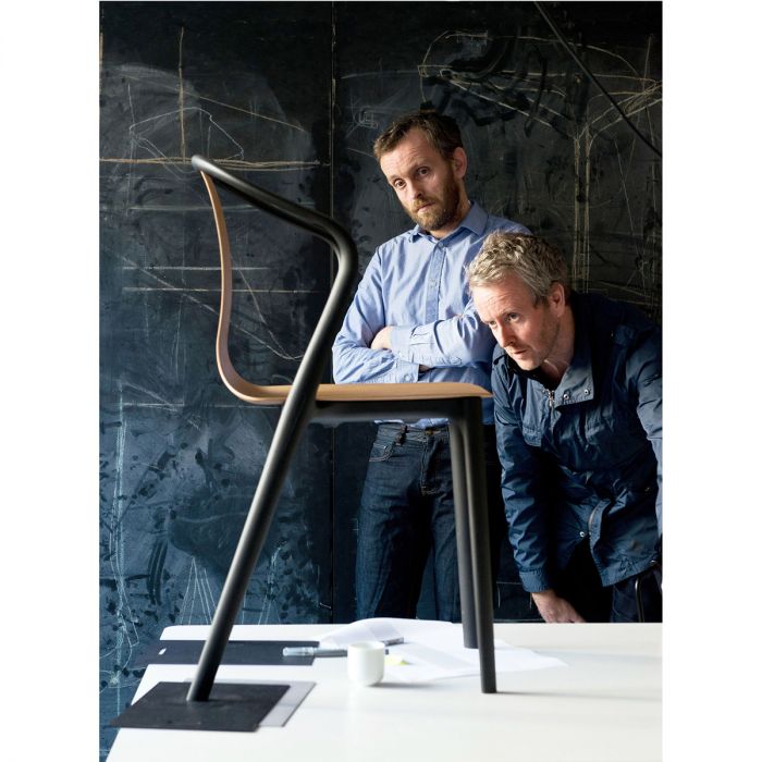 Belleville est le quartier parisien dynamique où se trouve le studio des designers Ronan et Erwan Bouroullec. Le mobilier de bistrot français classique et l’ambiance vivante de leur quartier ont été la source d'inspiration pour la Belleville Chair et les Belleville Tables – un siège en plastique inhabituel et une famille de tables dédiées aux salles à manger et aux cafétérias. La famille Belleville présente d'emblée une certaine évidence avec sa forme familière - même dans un contexte contemporain, tout en étant habitée par un côté mystérieux, un aspect quelque peu déroutant. En effet, elle ne laisse apercevoir ses matériaux, sa construction et son procédé de fabrication qu’au second regard. La Belleville Chair est un siège en plastique faisant preuve d’un grand raffinement technique, qui se compose de deux éléments : une structure porteuse et une coque d’assise. Telle une calligraphie, un cadre noir élancé dessine les pieds et le dossier du siège et accueille une coque fine qui va en s’effilant de l'assise large vers le dossier étroit. Les Belleville forment avec les Belleville Tables un ensemble homogène et pourtant varié, une famille hybride dont le langage formel et les matériaux sont harmonieusement coordonnés. Les sièges et les tables peuvent ainsi être parfaitement associés, en petit ou en grand nombre, pour aménager des bistrots animés, des galeries à la décoration plus sévère ou des appartements aux styles les plus divers.