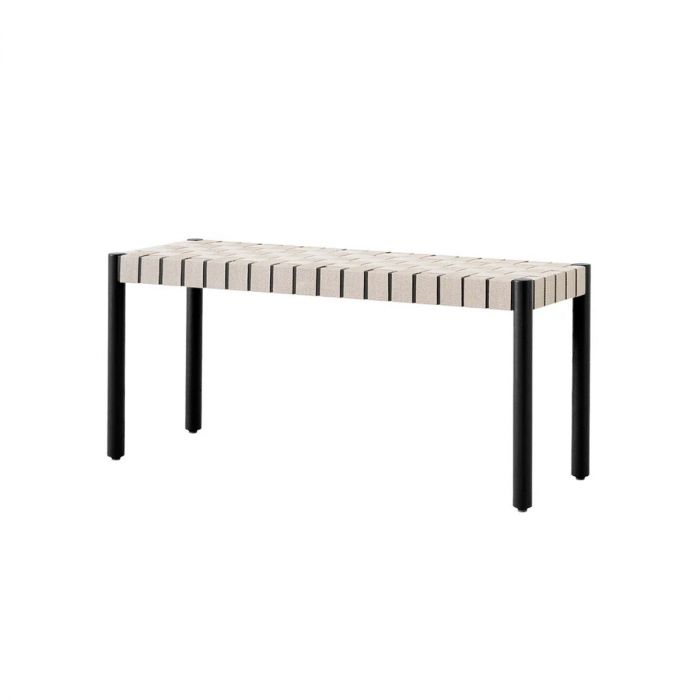 Betty Tk4 de &Tradition par Thau & Kallio. Nommé d'après le théâtre Betty Nansen de Copenhague, ce banc est fabriqué à partir de sangles apparentes fabriquées à la main à partir de fibres de lin naturelles.