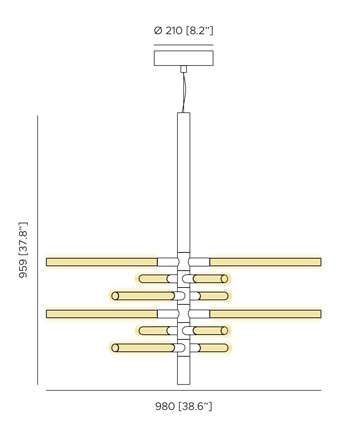 Bianca s'inspire de la structure symétrique en poutre typique des flocons de neige, rendue par des bras lumineux en finition laquée laiton ou soie noire mate. La lampe est composée de modules intégrés à la structure, qui, une fois connectés, façonnent les différentes variantes de la famille. La connexion de la lampe ne se fait pas par fil, mais par contact. Les sources lumineuses tubulaires, réalisées en verre blanc laiteux en trois tailles différentes, ont été spécialement conçues par Contardi, dotées d'une douille basse tension E14 (24V). Avec la suspension double Bianca, les modules sont modulables, permettant de créer un luminaire sur mesure offrant une lumière scénographique et sophistiquée, idéale pour les espaces résidentiels et professionnels. Bianca est également disponible en versions suspension simple, applique, linéaire, à poser et liseuse. Qu'elle soit fixée au mur ou utilisée comme suspension, utilisée comme lampe de lecture ou de sol, c'est une pièce décorative à la fois fonctionnelle et frappante qui ajoute élégance et sophistication à son environnement.