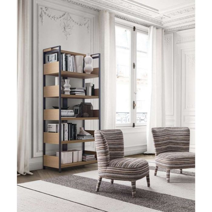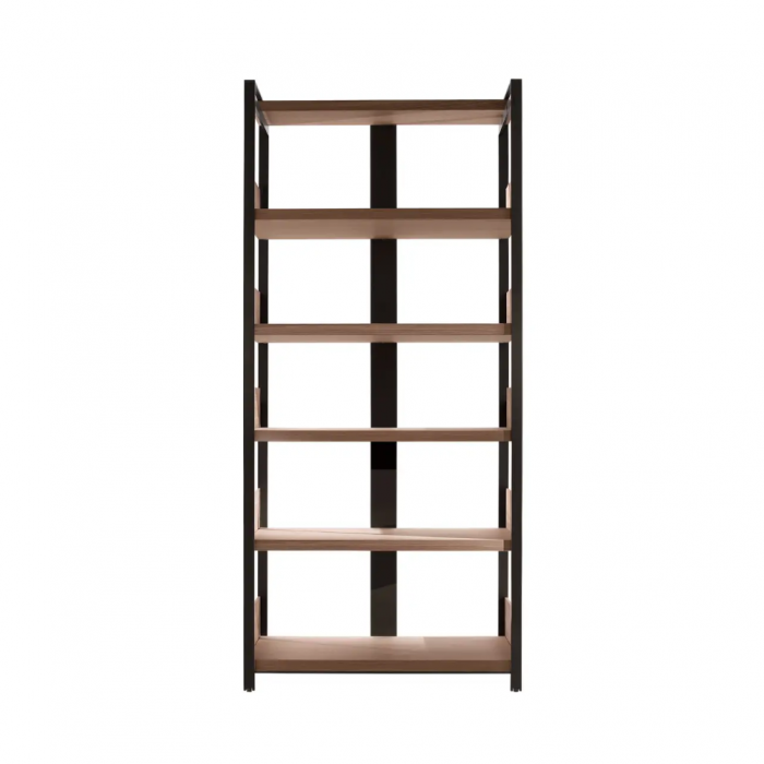 Eracle conçue par Antonio Citterio pour Maxalto est une bibliothèque avec structure et étagères en bois massif. Base et plateau supérieur en profils d'acier peints en nickel bronzé.