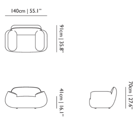 L 140 x Prof. 91 x H 70 cm
