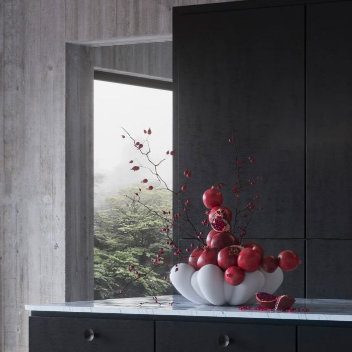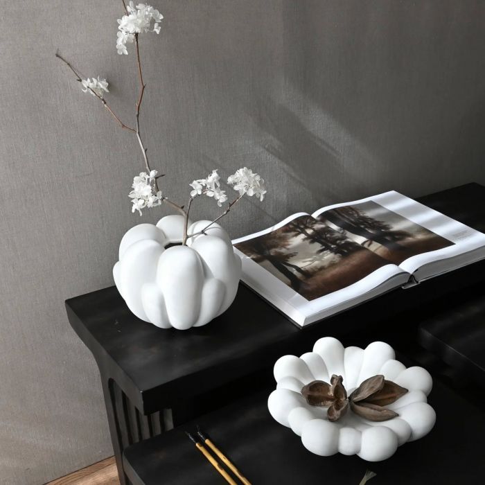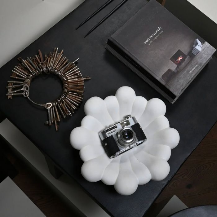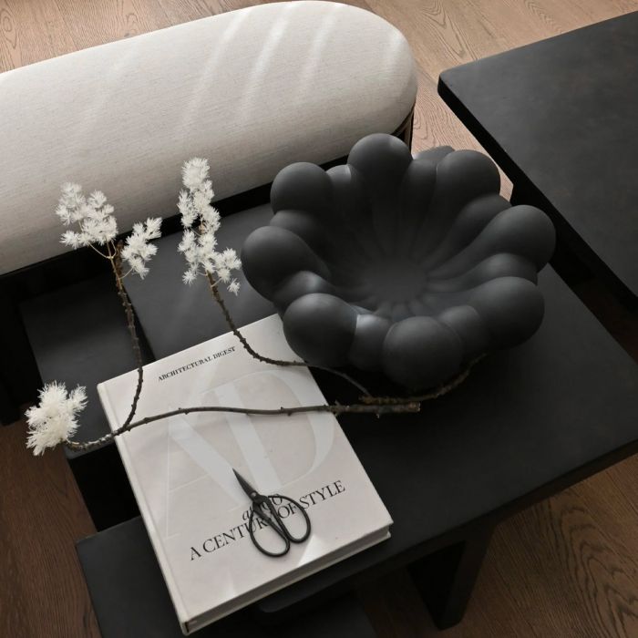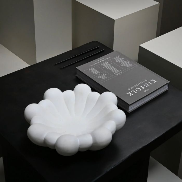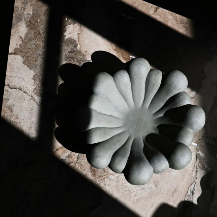 Bloom plateau de 101 Copenhagen par Kristian Sofus Hansen et Tommy Hyldahl. Inspirée des formes florales, Bloom met l'accent sur des formes douces et organiques dans une collection de vases et plateaux en céramique sculpturaux. Élégamment sculptée, chaque céramique Bloom est caractérisée par plusieurs feuilles de fleurs qui se fondent les unes dans les autres, rappelant les différentes étapes d'une fleur, de la fermeture à l'ouverture. Bloom est une interprétation du design floral des années 70, mais avec une expression plus brute et plus épurée. Bloom est disponible en vases et en plateaux et est fabriqué en céramique et en béton fibré. La surface est émaillée à la main afin d'obtenir une texture de surface unique. Les couleurs peuvent varier légèrement, car il s'agit d'un produit fait à la main.