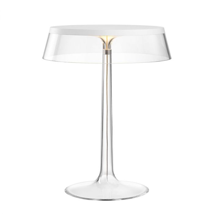 L’élégance intemporelle de la dématérialisation high tech. Un corps éthéré, pur, quasi immatériel. La base nue et transparente de la lampe à poser Bon Jour de Flos est personnalisable grâce à une variété de finitions et d’accessoires interchangeables qui traduisent les goûts personnels de chacun. La révolutionnaire technologie Edge Lighting rejoint le concept de "dématérialisation" propre au produit. Elle exploite pleinement les capacités de la LED avec une épaisseur minimum et garantit une lumière parfaitement uniforme, un confort visuel élevé, une performance et une efficacité optimales. Le design minimal unique du dimmer intégré permet un contrôle total de l'intensité lumineuse en un seul clic.