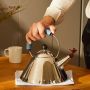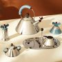 Bouilloire 9093 de Alessi par Michael Graves. La bouilloire 9093, avec un sifflet en forme d’oiseau, est l’un des objets Alessi les plus vendus au monde. Le design de cette bouilloire à induction en acier inoxydable, créée par Michael Graves en 1985, mélange les influences tirées par l’art européen, de la pop américaine et des citations des cultures précolombiennes. Le langage visuel unique de Graves est la raison du succès extraordinaire que la bouilloire a eu depuis l'année de sa production. C'est un objet intelligent, élégant, mais en même temps ludique et amusant : lorsque l'eau commence à bouillir, l'oiseau chante, entraînant un sourire inévitable.