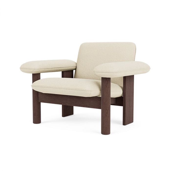 Brasilia Lounge chair de Audo par Anderssen & Voll. Le profil bas et l'étreinte enveloppante de la chaise longue Brasilia invitent à la détente. Inclinée pour améliorer l'assise, cette version inférieure du design original de la chaise Brasilia repose sur le cadre en bois massif caractéristique de la collection qui présente des pieds avant arrondis, des accoudoirs exagérés et un revêtement en textile pour une expérience douillette et confortable. À la fois emblématique et moderne dans son expression, il s’inspire de l’esthétique scandinave du milieu du siècle et du modernisme brésilien.