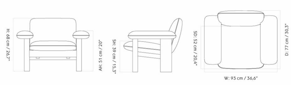 Matériaux : Chêne massif, acier, rembourrage, contreplaqué, mousse durcie à froid