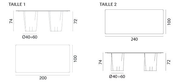Taille 2 : L 240 x larg. 100 x H 72 cm