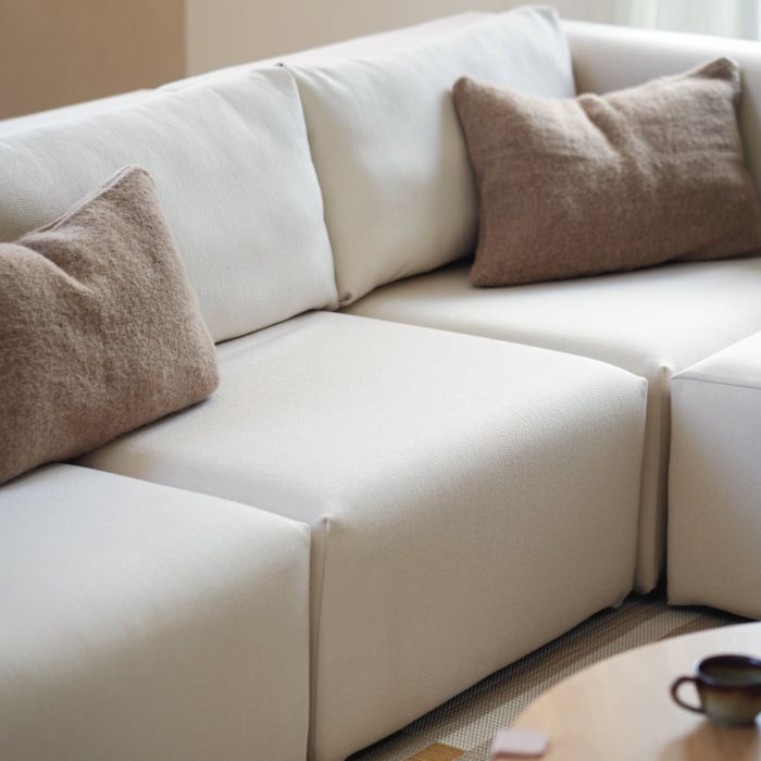 Bridge de TipToe. BRIDGE est un canapé modulable intemporel et élégant structuré par des lignes claires et définies. Composé de trois modules distincts et interchangeables – angle, chauffeuse ou ottoman – ce canapé en tissu offre une modularité et une adaptabilité exceptionnelles. Ses proportions généreuses, son assise en mousse à la fois ferme et accueillante, son tissu doux en laine épaisse ainsi que ses coussins rembourrés garantissent au canapé BRIDGE un confort sans pareil.